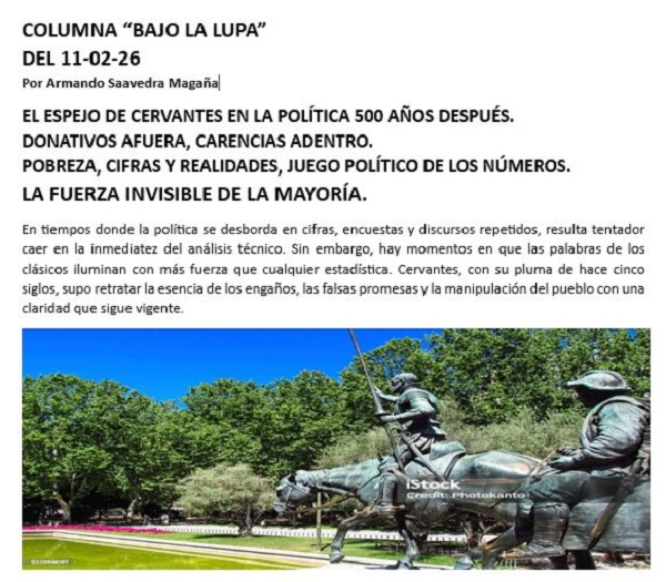 En tiempos donde la política se desborda en cifras, encuestas y discursos repetidos, resulta tentador caer en la inmediatez del análisis técnico. Sin embargo, hay momentos en que las palabras de los clásicos iluminan con más fuerza que cualquier estadística. Cervantes, con su pluma de hace cinco siglos, supo retratar la esencia de los engaños, las falsas promesas y la manipulación del pueblo con una claridad que sigue vigente.